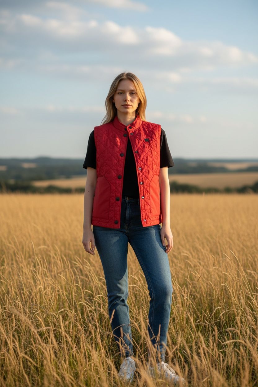 This gilet boasts sustainable item as fabric designs with sustainable stock fabric to save the environment green.